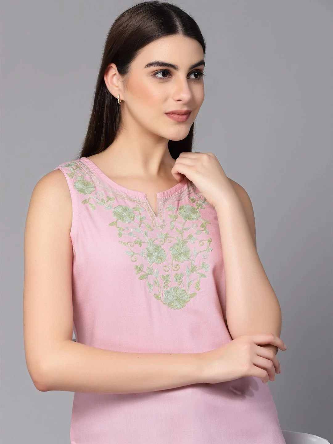 Light Pink Kashmiri Short Kurti
