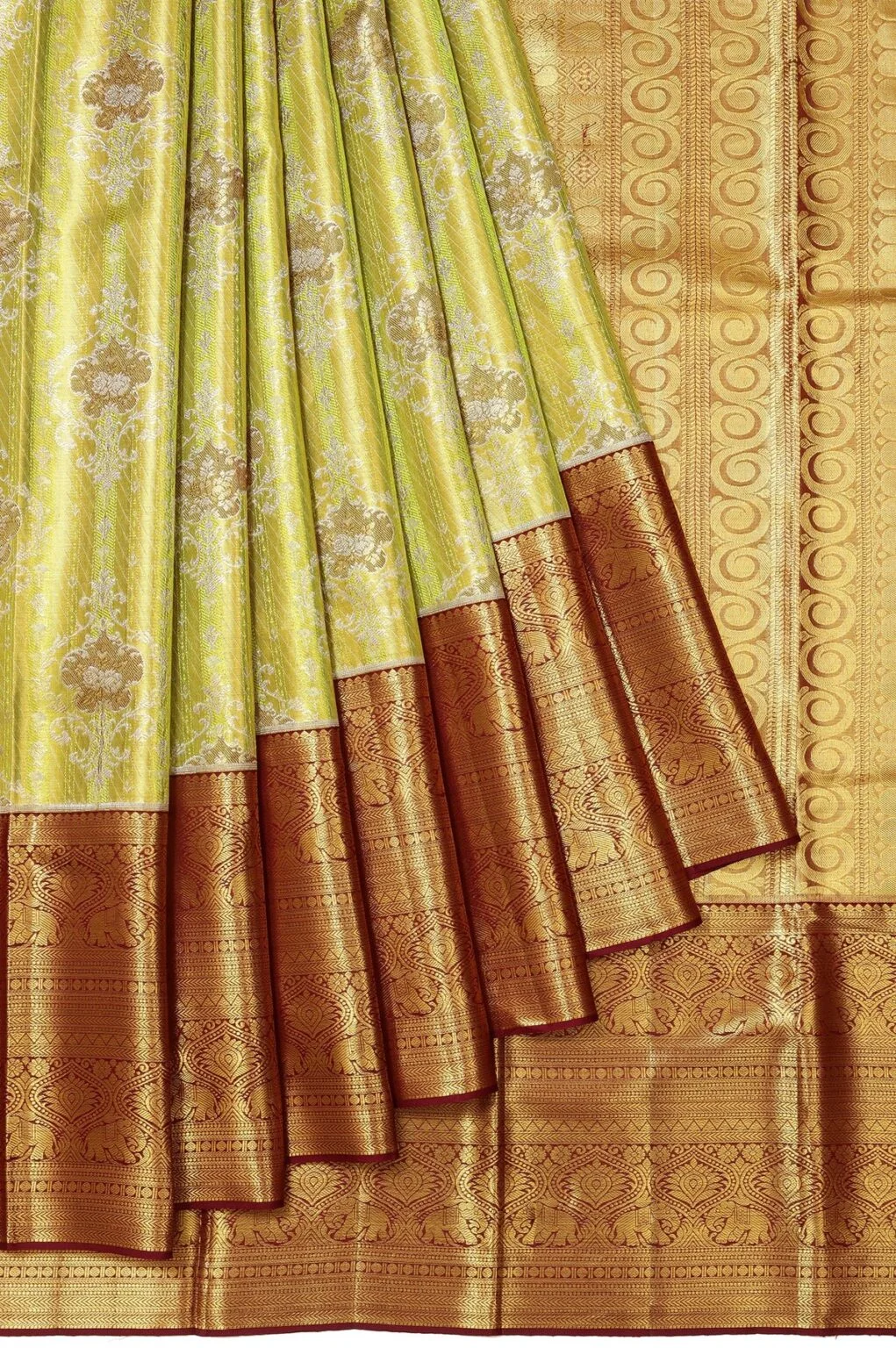 Parrot Green Kanchipuram Tissue Silk Saree