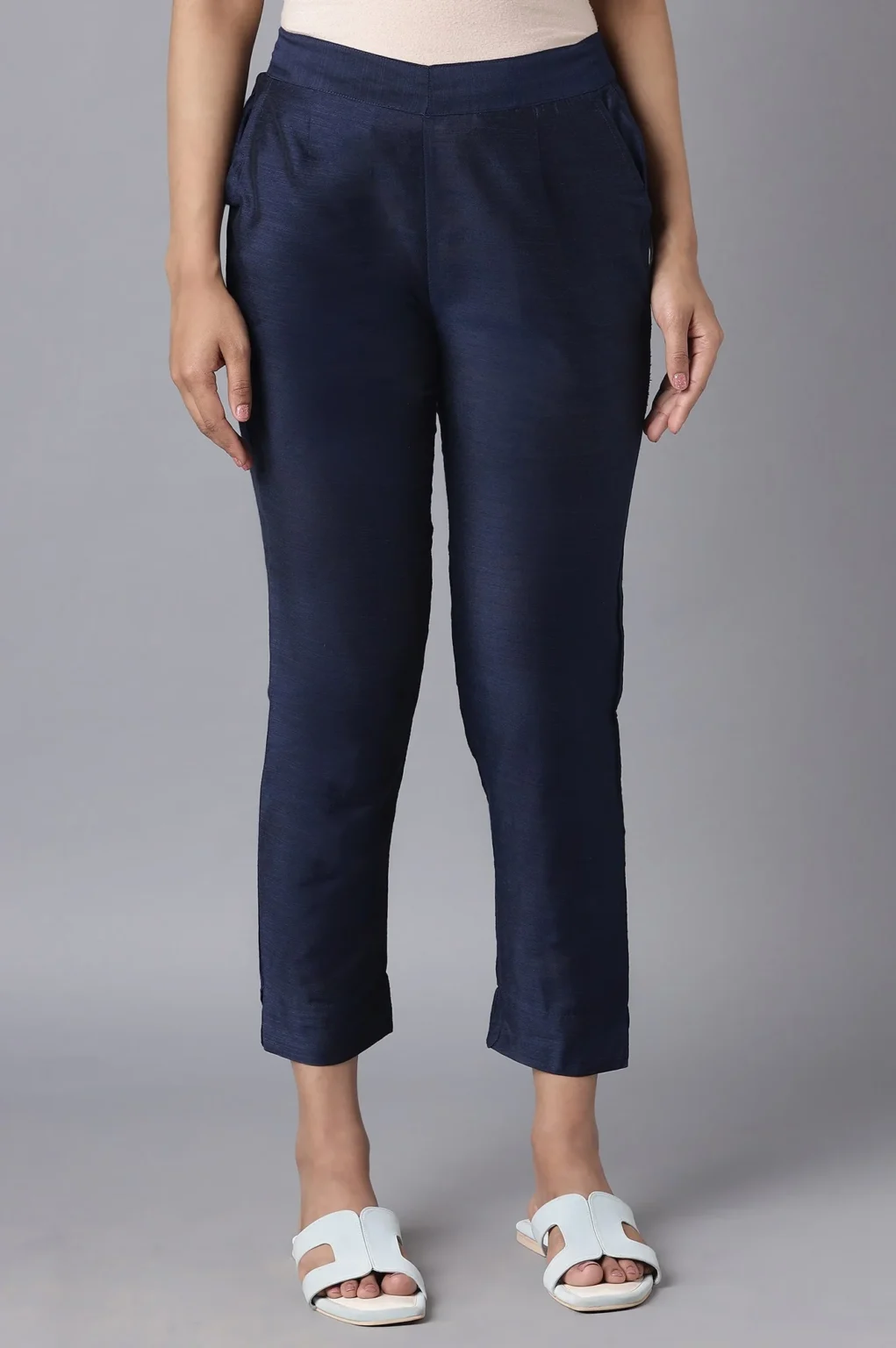 ₹800.00Embrace the spirit of summer with this pair of cool, gray-colored handloom palazzos. These cropped palazzos are made with original cotton fabric and showcase pretty front pleats.
