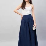 Navy Blue Smart Casual Handloom Palazzo