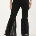 Black Solid Flared Rayon Palazzo With Pleats